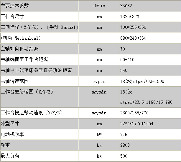 產(chǎn)品名稱(chēng):X5032立式升降臺(tái)銑床